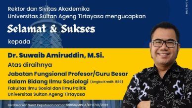 Serang-SAF (10/6)- Gelar Guru besar merupakan penghargaan pangkat tertinggi sebagai fungsional di perguruan tinggi. Sosiolog Untirta Suwaib Amiruddin memperoleh gelar Fungsional sebagai Guru
